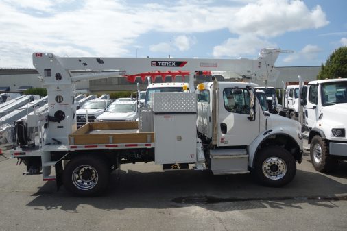 The Terex Commander 4000 distribution digger derrick is known for its overall productivity, reliable design, and work zone capacity. Available with a turret mount or boom tip winch, Terex® digger derricks get the job done by allowing you to dig, lift, and set the pole without having to move the truck.